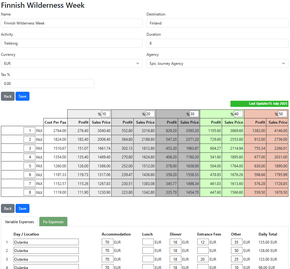 This page is designed to give you full financial control over your tour pricing.
