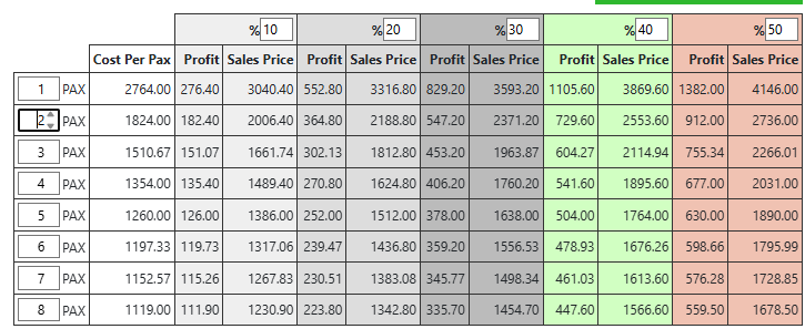 - 5- Final Sales Price per Pax is calculated